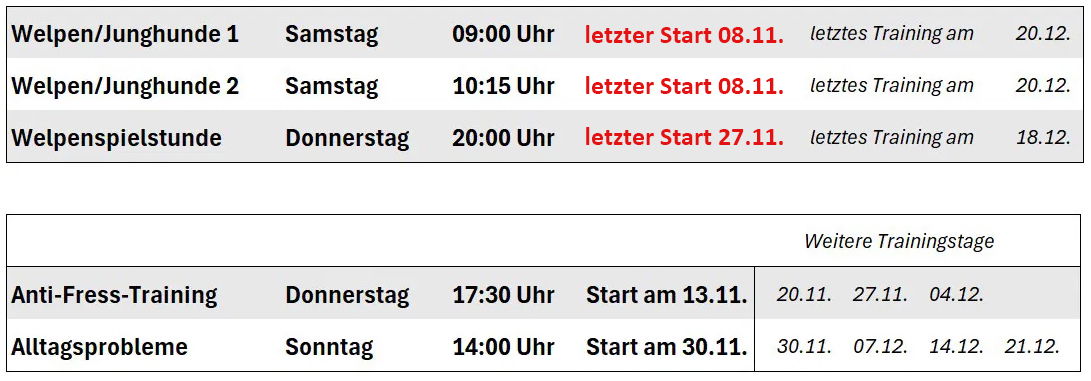 Schaut hier auf der Seite Hundeschule, ob der richtige Kurs für euch dabei ist uns reserviert euch gleich einen Platz!